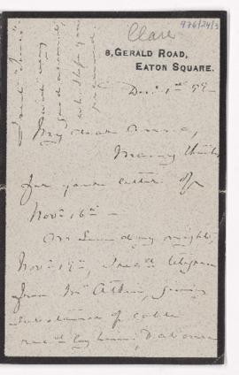 Letter from Rankine Dawson to Anna Harrington. Letter discusses Clare.