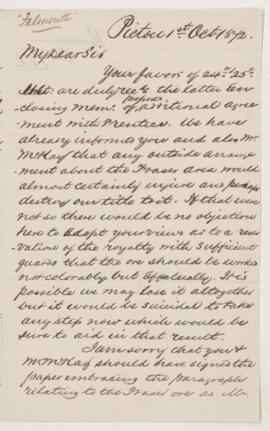 Letter from Howard Primrose John William Dawson, written from Pictou.