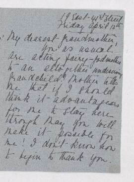 Ruth Minna, born in 1882, was the fourth child of Anna Dawson Harrington (daughter of Sir William Dawson) and her husband, Bernard James Harrington, a professor of chemistry and mineralogy at McGill University. She grew up with her eight siblings in Walbrae Place next to the McGill campus and later at 293 University Street (now 3641), next door to her grandparents. Summers were spent in Little Metis (in the Gaspé) in a summer home very near to her grandparents’ place, Birkenshaw. She married McGill graduate Edward Phillips Featherstonhaugh in 1908, and the next year the couple moved to Winnipeg; her husband had been appointed the University of Manitoba’s first professor of electrical engineering. He spent his first years there organizing the university’s first such department.