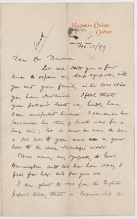 Letter from Henry A. Miers to George Mercer Dawson, written from Magdalen College, Oxford.