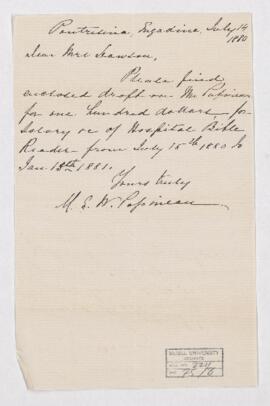 Letter from M.E.W. Papineau to Margaret Mercer Dawson.