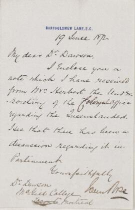 Letter from John Rose to John William Dawson.