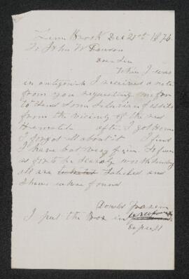 Letter from Donald Fraser to John William Dawson, written from Lime Brook.
