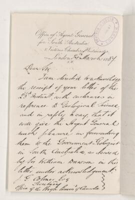 Letter from Saml. [Deeriory] to J.G. Colmer, written from London.