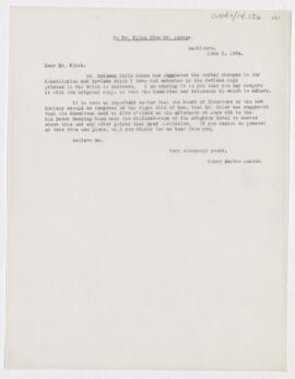 Letter to Lawrence F. Flick from Henry Barton Jacobs, Baltimore, Maryland, USA. Jacobs writes of matters relating to the newly formed Association for the Study and Prevention of Tuberculosis. The composition of the Board of Directors is of such importance that Osler has organized a special meeting to settle the issue.