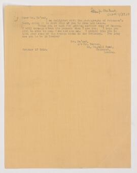 Letter to M. Sa'eed from William Osler. Osler thanks Sa'eed for the photographs of Avicenna's tomb and for sending a copy of "Qanoun." He would like Sa'eed to come to Oxford to look over some of the Arabic books in the Bodleian Library.